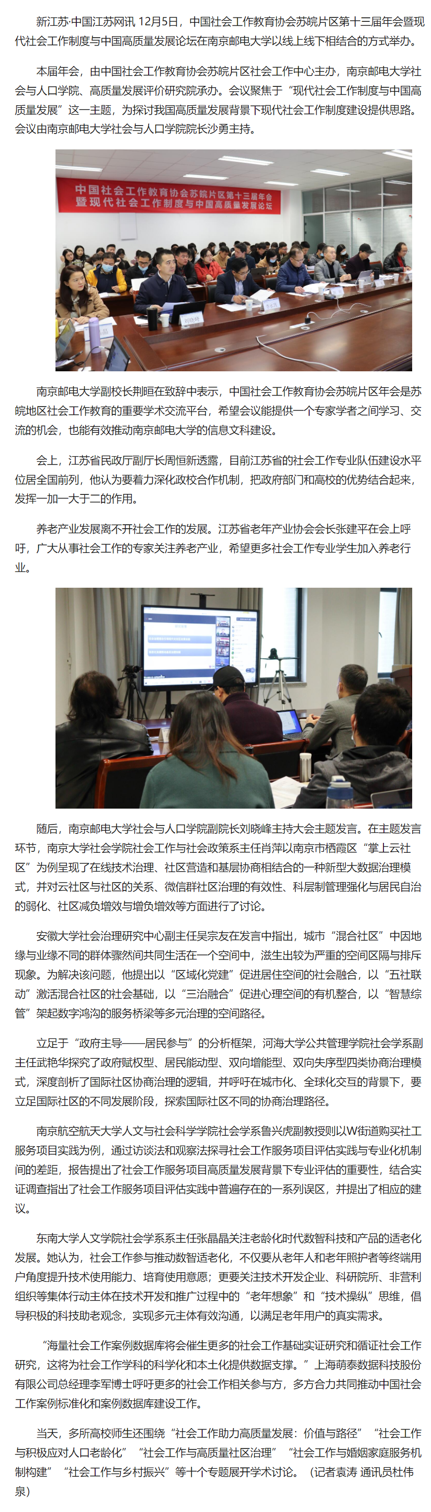 | 【中國江蘇網】線上線下相結合 專家學者在寧研討現代社會工作制度 |