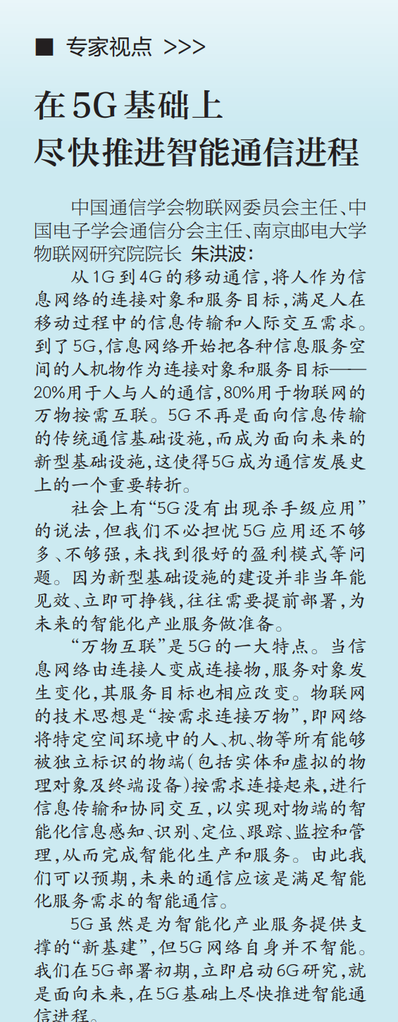 | 【新華日報(bào)】在5G基礎(chǔ)上 盡快推進(jìn)智能通信進(jìn)程 |