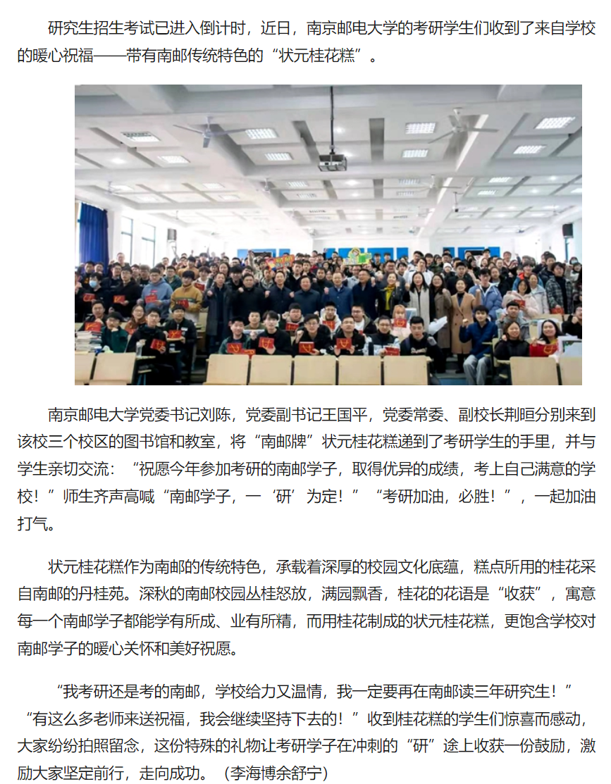 | 【中國江蘇網】考研加油!南郵為考研學子送上定制桂花糕 |