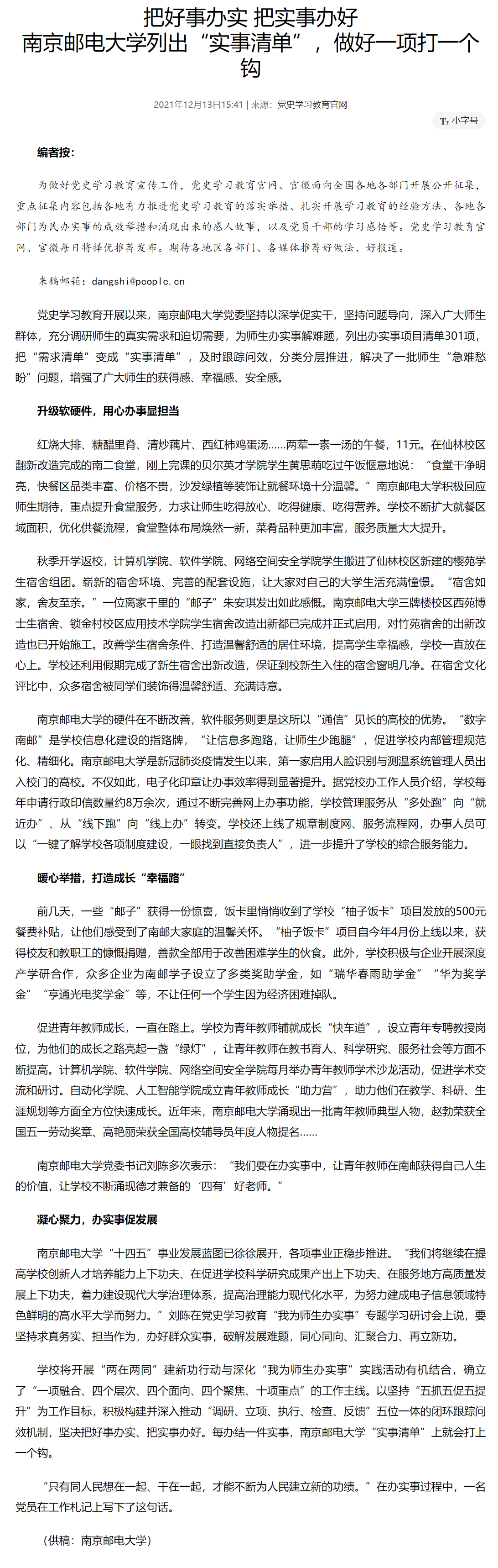 | 【黨史學(xué)習(xí)教育官網(wǎng)】把好事辦實(shí) 把實(shí)事辦好 南京郵電大學(xué)列出“實(shí)事清單”,做好一項(xiàng)打一個(gè)鉤 |