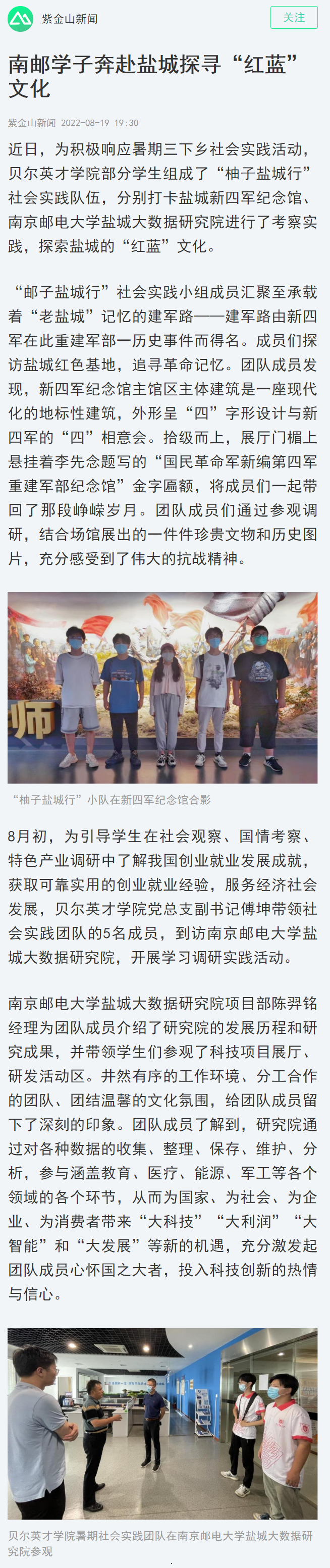 | 【南京日報客戶端】南郵學子奔赴鹽城探尋“紅藍”文化 |