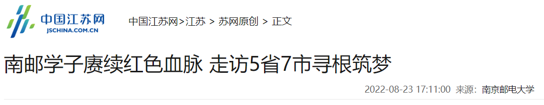 | 【中國江蘇網】南郵學子賡續紅色血脈 走訪5省7市尋根筑夢 |