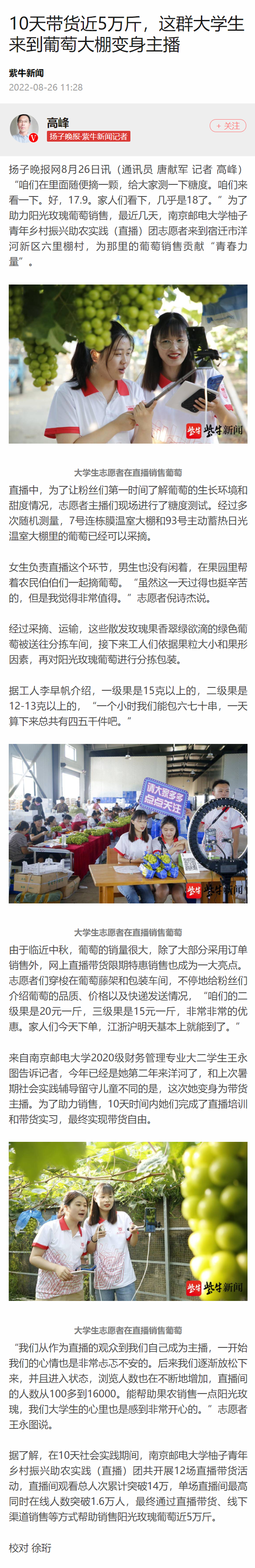 | 【揚子晚報客戶端】10天帶貨近5萬斤,這群大學生來到葡萄大棚變身主播 |