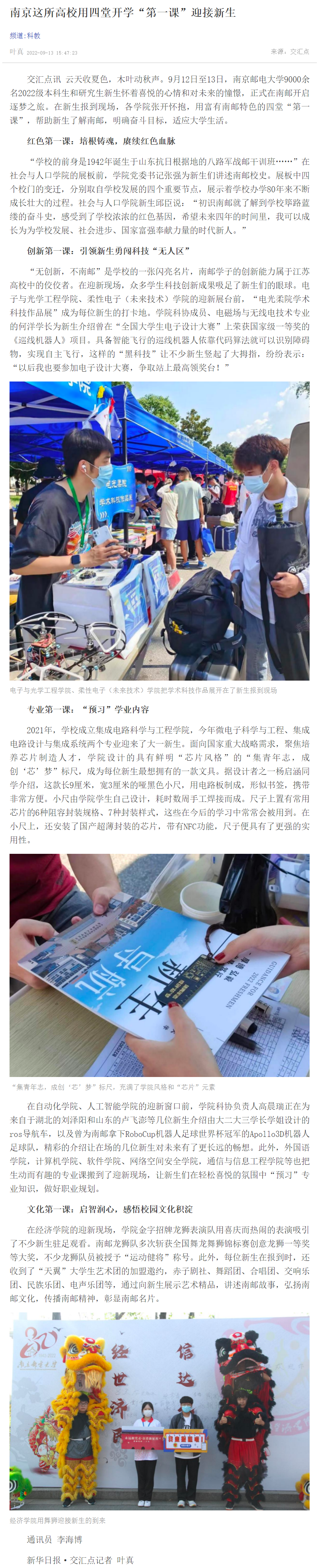 | 【新華日報客戶端】南京這所高校用四堂開學(xué)“第一課”迎接新生 |