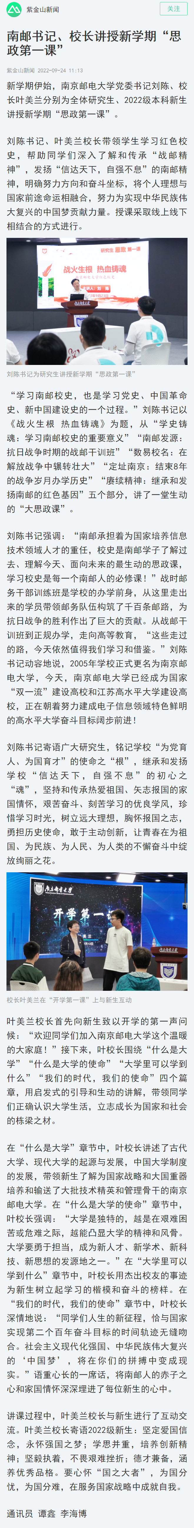 | 【南京日報客戶端】南郵書記、校長講授新學期“思政第一課” |