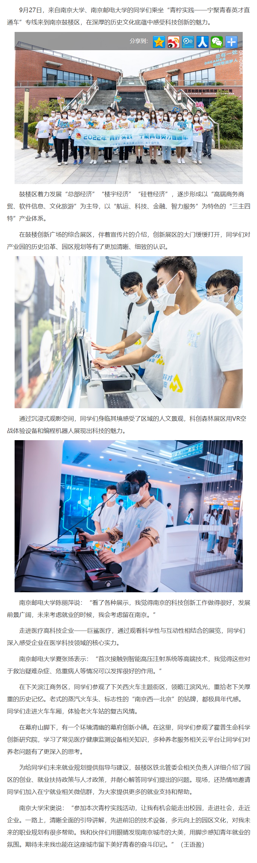 | 【新華網江蘇頻道】“寧聚青春英才直通車”開往南京鼓樓 感受科技創新魅力 |
