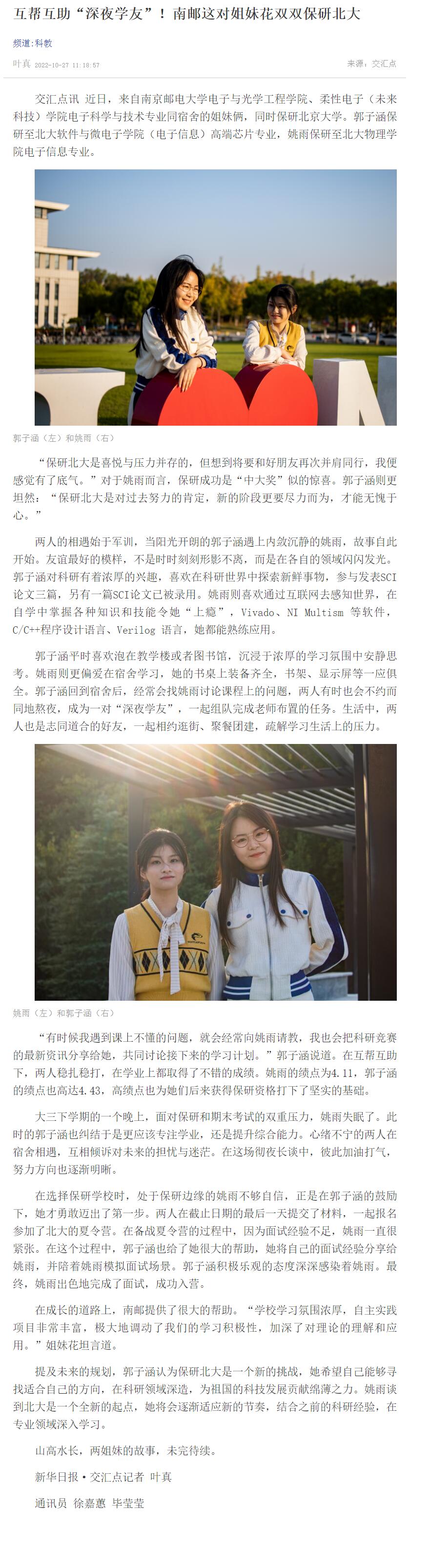 | 【新華日?qǐng)?bào)客戶端】互幫互助“深夜學(xué)友”!南郵這對(duì)姐妹花雙雙保研北大 |