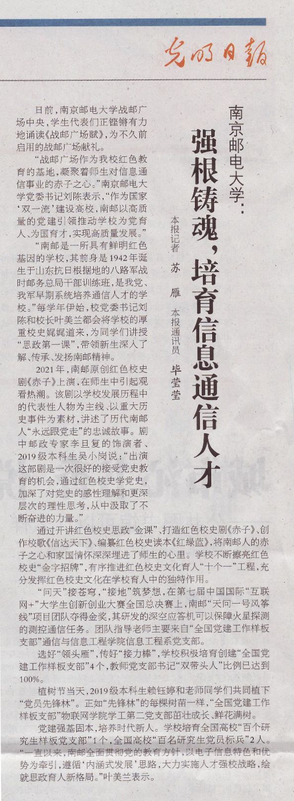 | 【光明日報】南京郵電大學: 強根鑄魂,培育信息通信人才 |