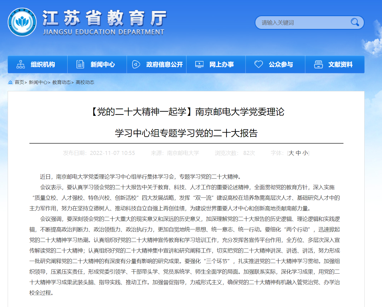 | 【省教育廳官網】南京郵電大學黨委理論學習中心組專題學習黨的二十大報告 |
