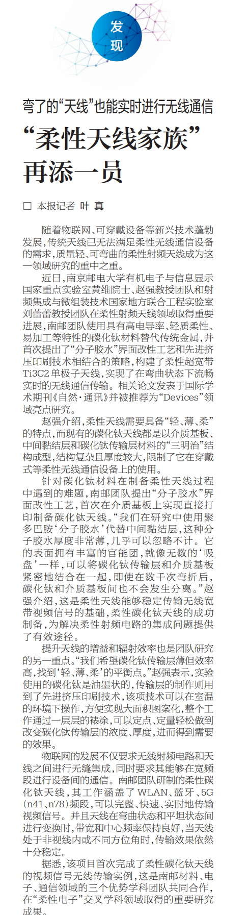 | 【新華日?qǐng)?bào)】“柔性天線家族” 再添一員 |