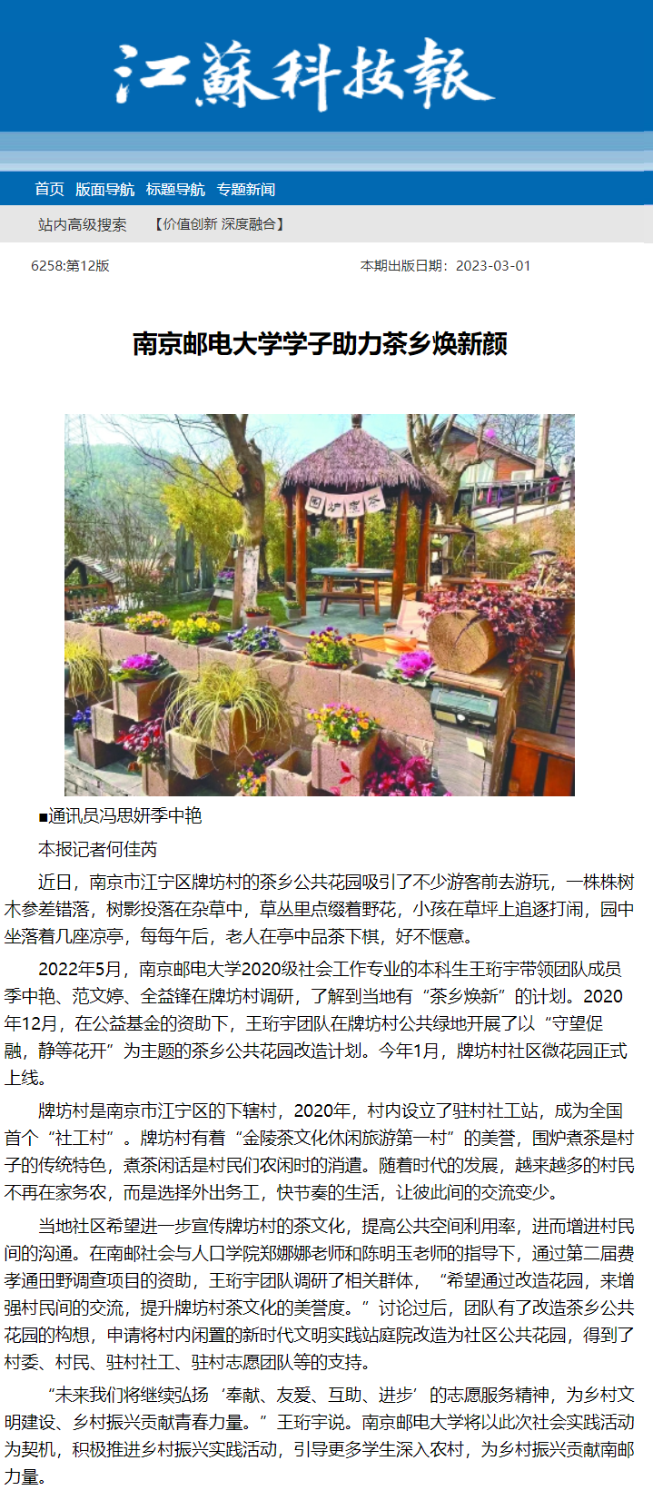 | 【江蘇科技報】南京郵電大學學子助力茶鄉煥新顏 |