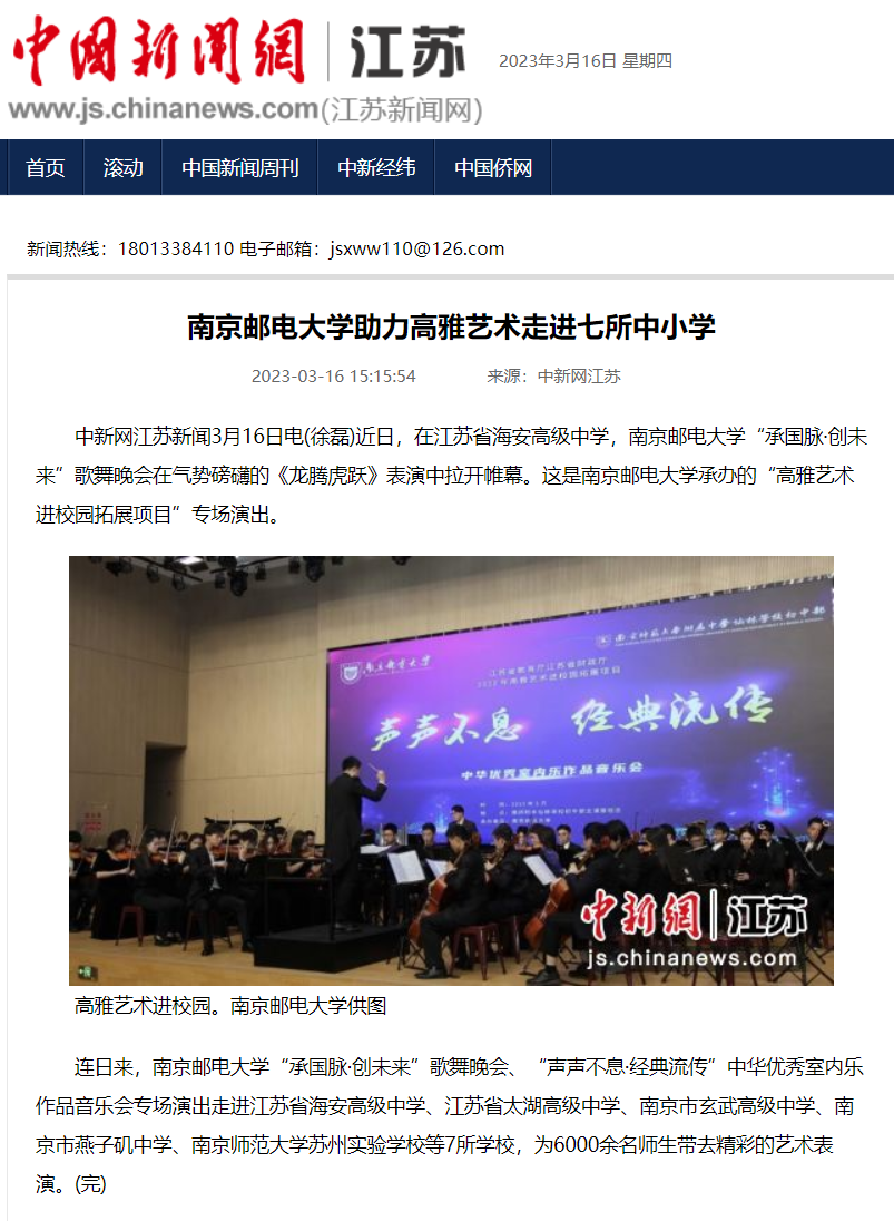 | 【中國新聞網】南京郵電大學助力高雅藝術走進七所中小學 |