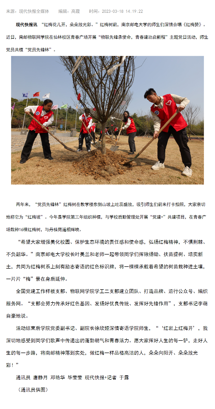 | 【現代快報全媒體】一年時光春最好,南郵師生共植“黨員先鋒林” |