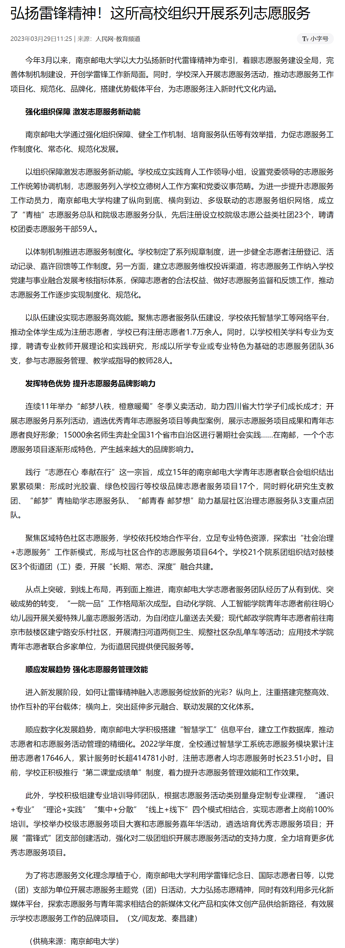 | 【人民網】弘揚雷鋒精神!這所高校組織開展系列志愿服務 |
