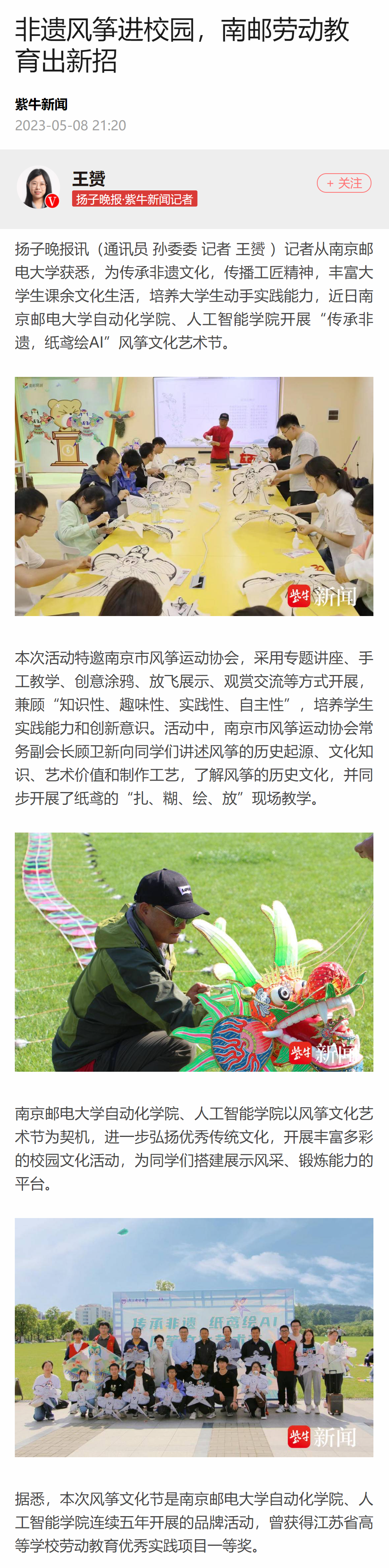 | 【揚(yáng)子晚報客戶端】非遺風(fēng)箏進(jìn)校園,南郵勞動教育出新招 |