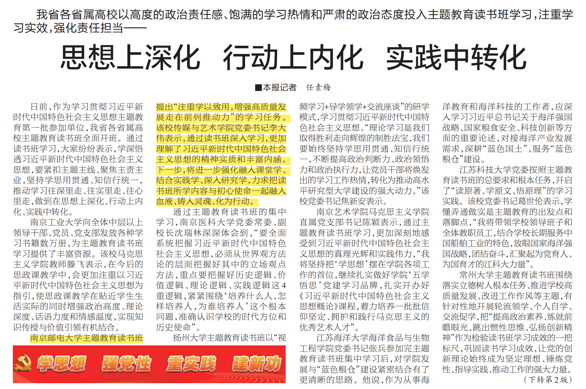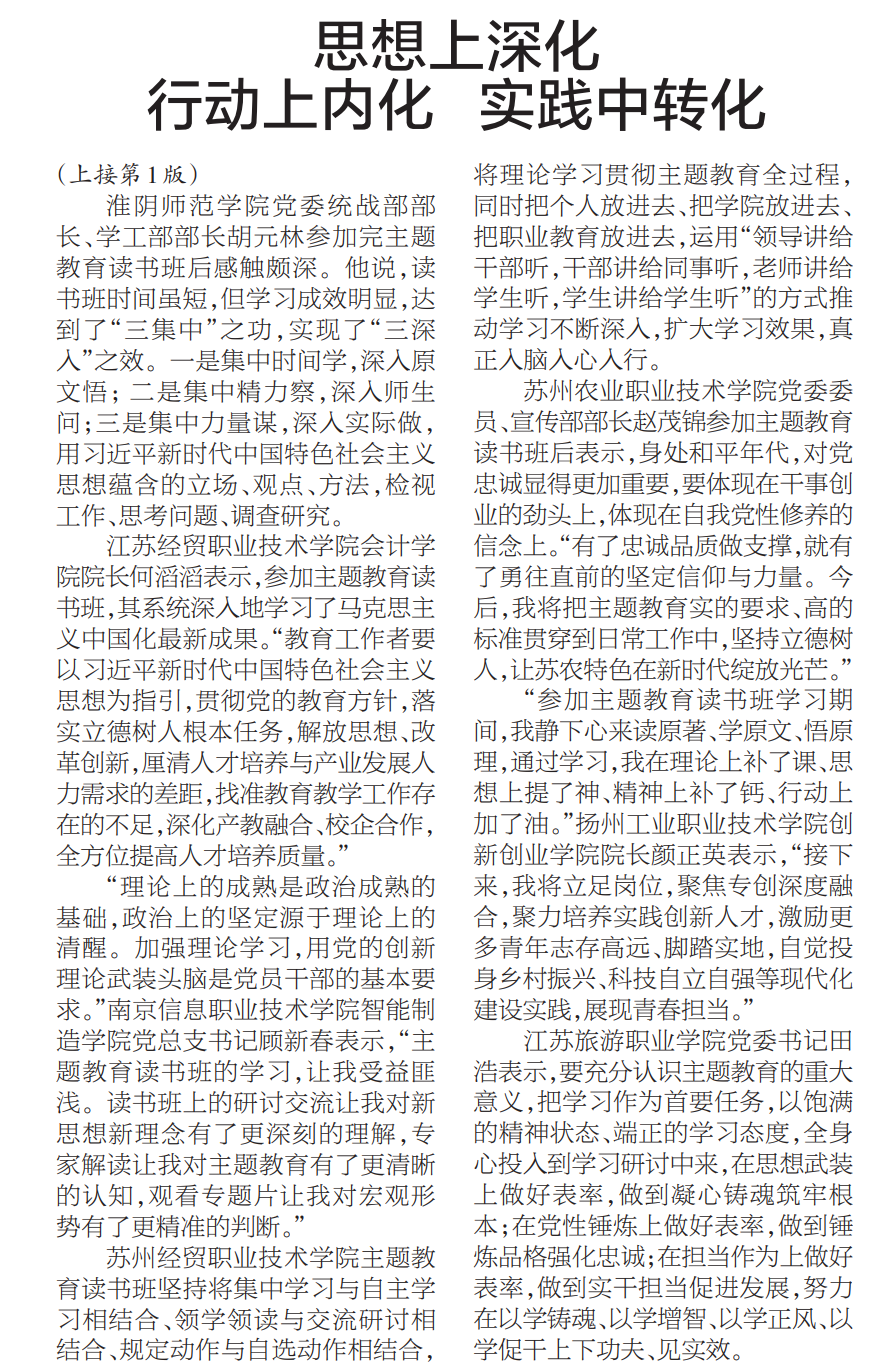 | 【江蘇教育報(bào)】思想上深化 行動(dòng)上內(nèi)化 實(shí)踐中轉(zhuǎn)化 |