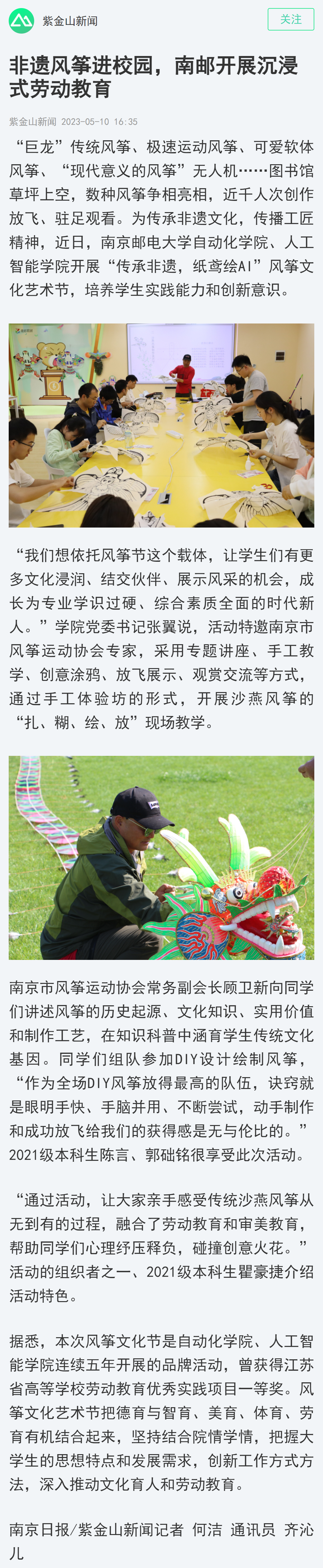 | 【南京日報客戶端】非遺風箏進校園,南郵開展沉浸式勞動教育 |