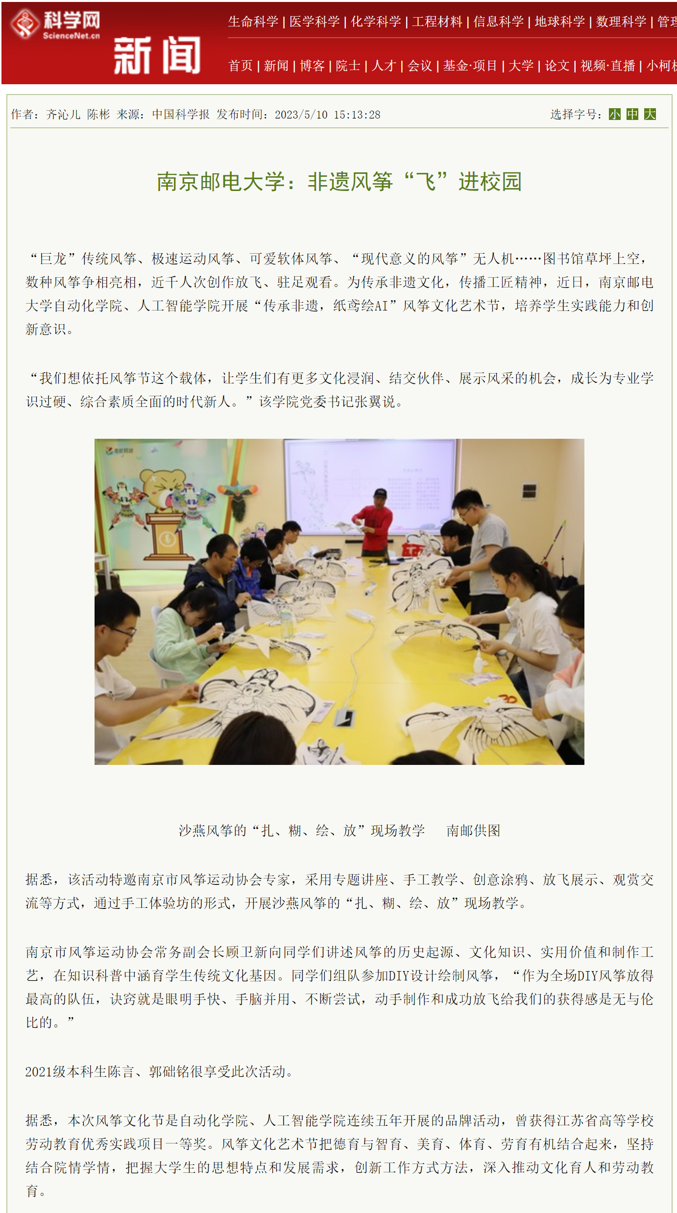 | 【科學網】南京郵電大學:非遺風箏“飛”進校園 |