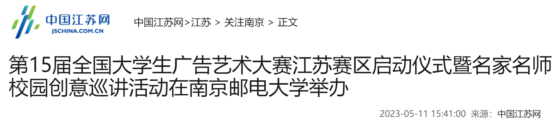 | 【中國江蘇網】第15屆全國大學生廣告藝術大賽江蘇賽區啟動儀式暨名家名師校園創意巡講活動在南京郵電大學舉辦 |