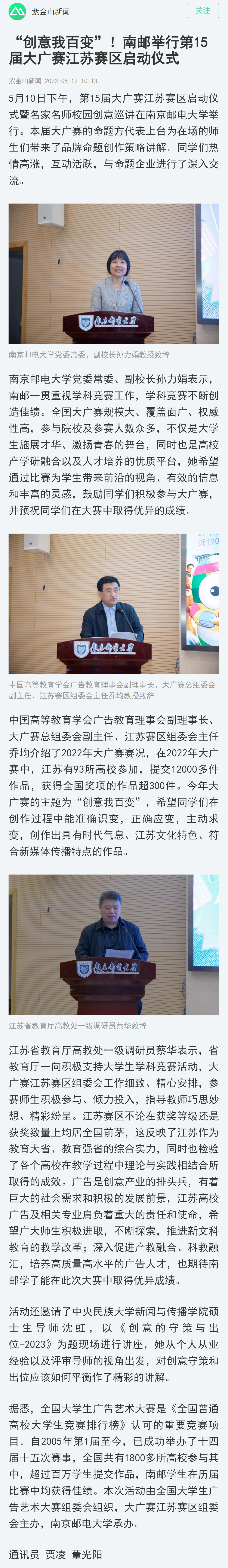 | 【南京日?qǐng)?bào)客戶端】“創(chuàng)意我百變”!南郵舉行第15屆大廣賽江蘇賽區(qū)啟動(dòng)儀式 |
