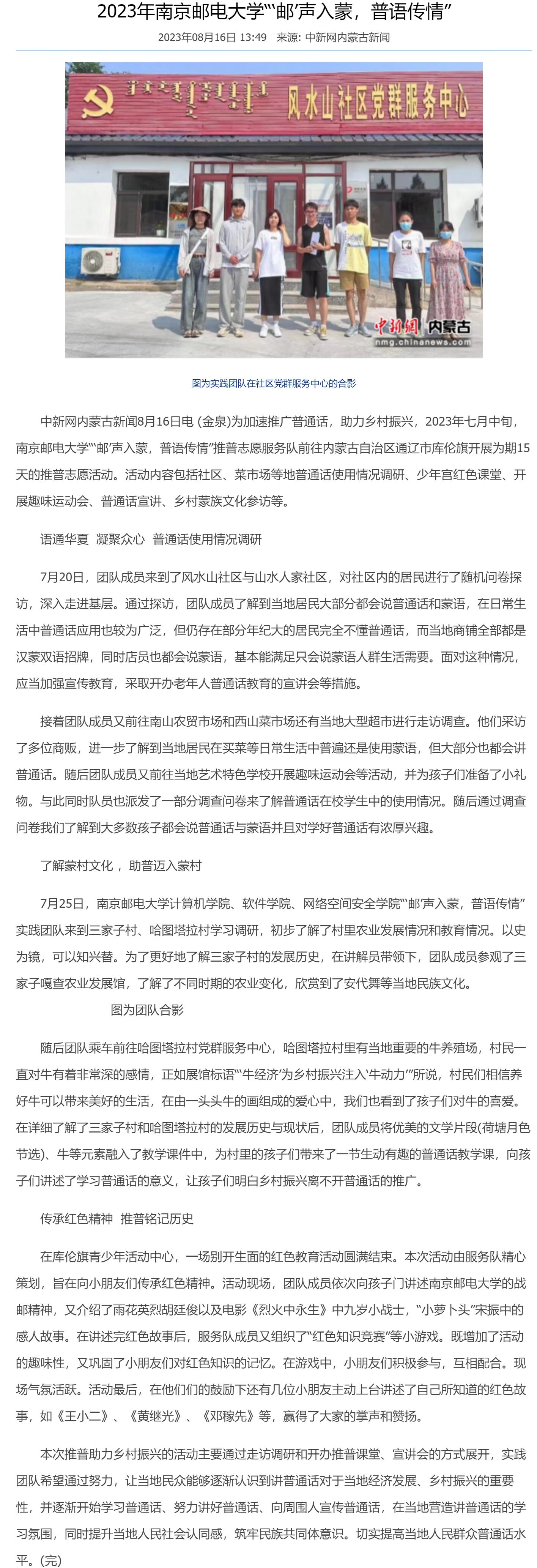 | 【中國新聞網(wǎng)】2023年南京郵電大學(xué)“‘郵’聲入蒙,普語傳情” |