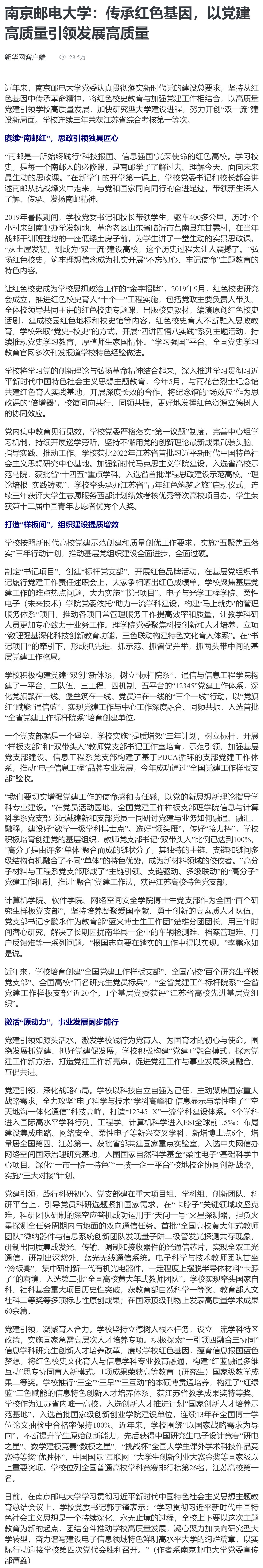 | 【新華網】南京郵電大學:傳承紅色基因,以黨建高質量引領發展高質量 |