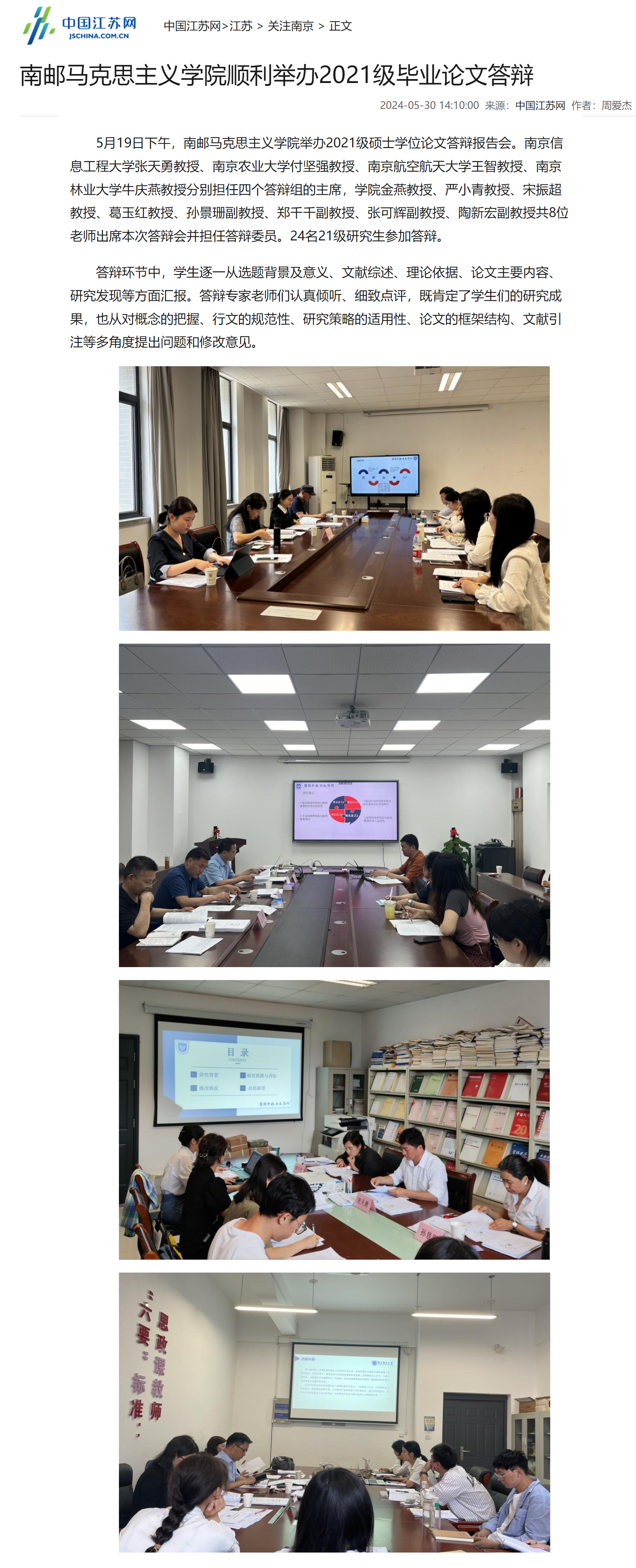 | 【中國江蘇網】南郵馬克思主義學院順利舉辦2021級畢業論文答辯 |