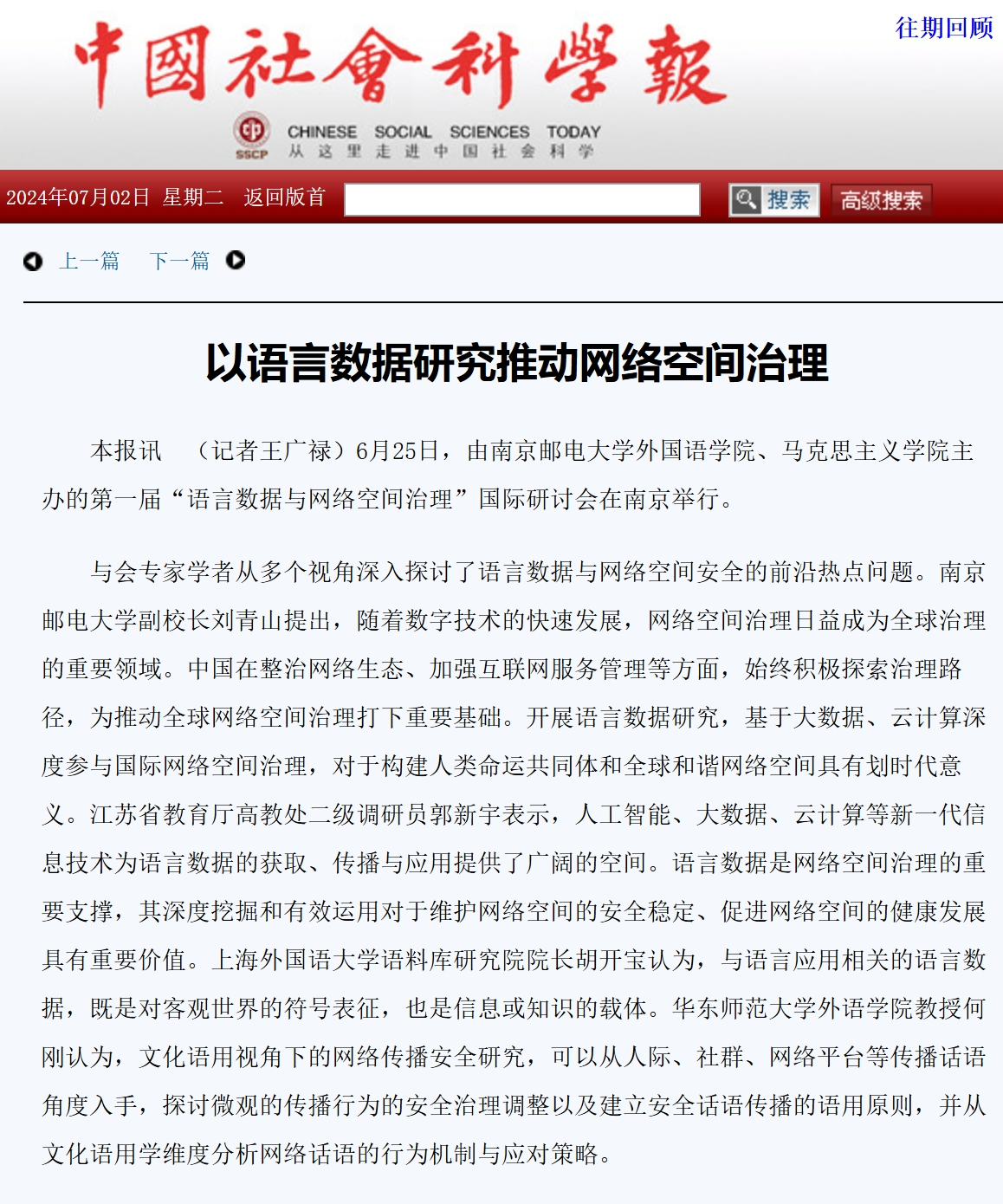 | 【中國(guó)社會(huì)科學(xué)報(bào)】以語(yǔ)言數(shù)據(jù)研究推動(dòng)網(wǎng)絡(luò)空間治理 |