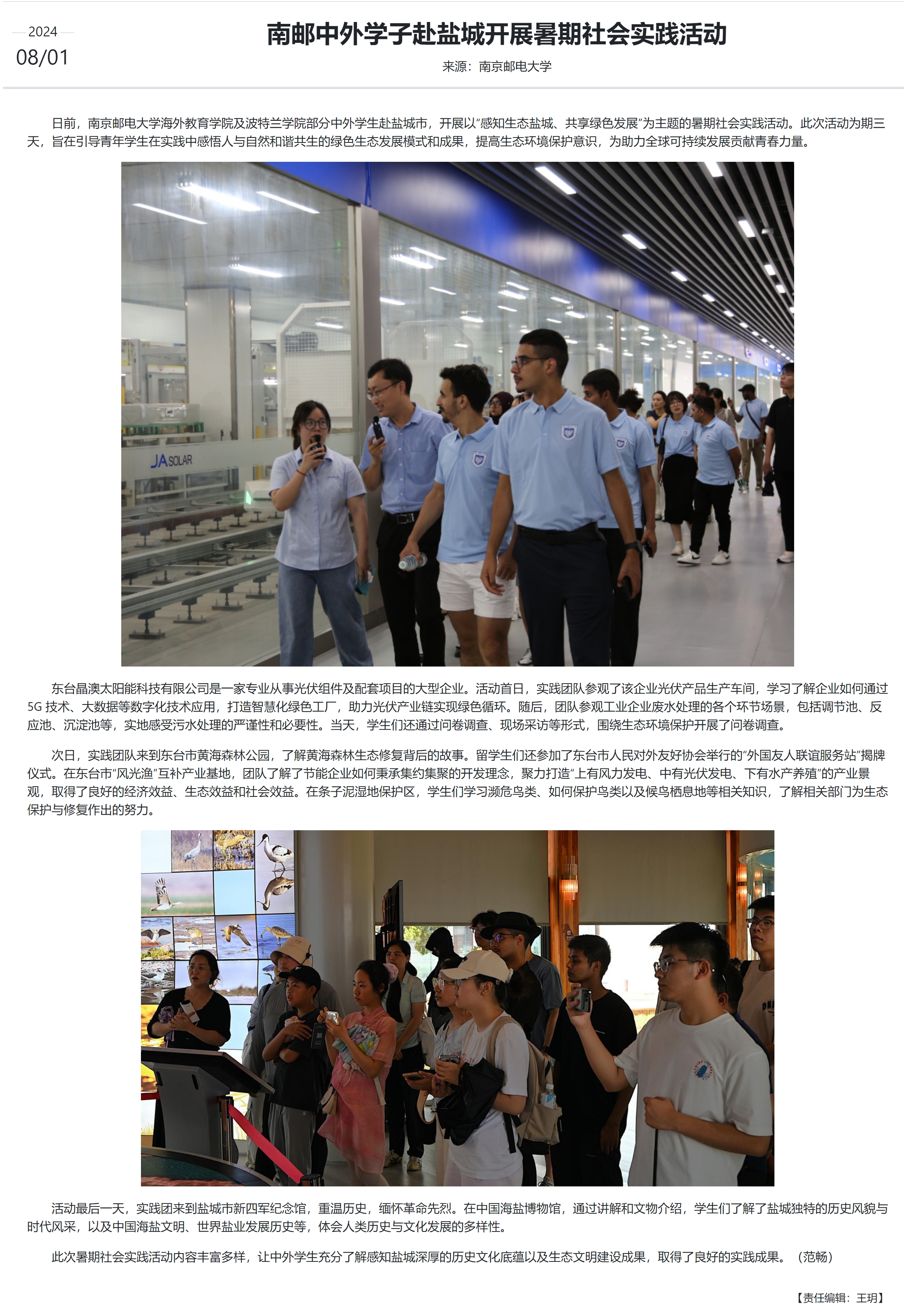 | 【新華網(wǎng)】南郵中外學(xué)子赴鹽城開(kāi)展暑期社會(huì)實(shí)踐活動(dòng) |