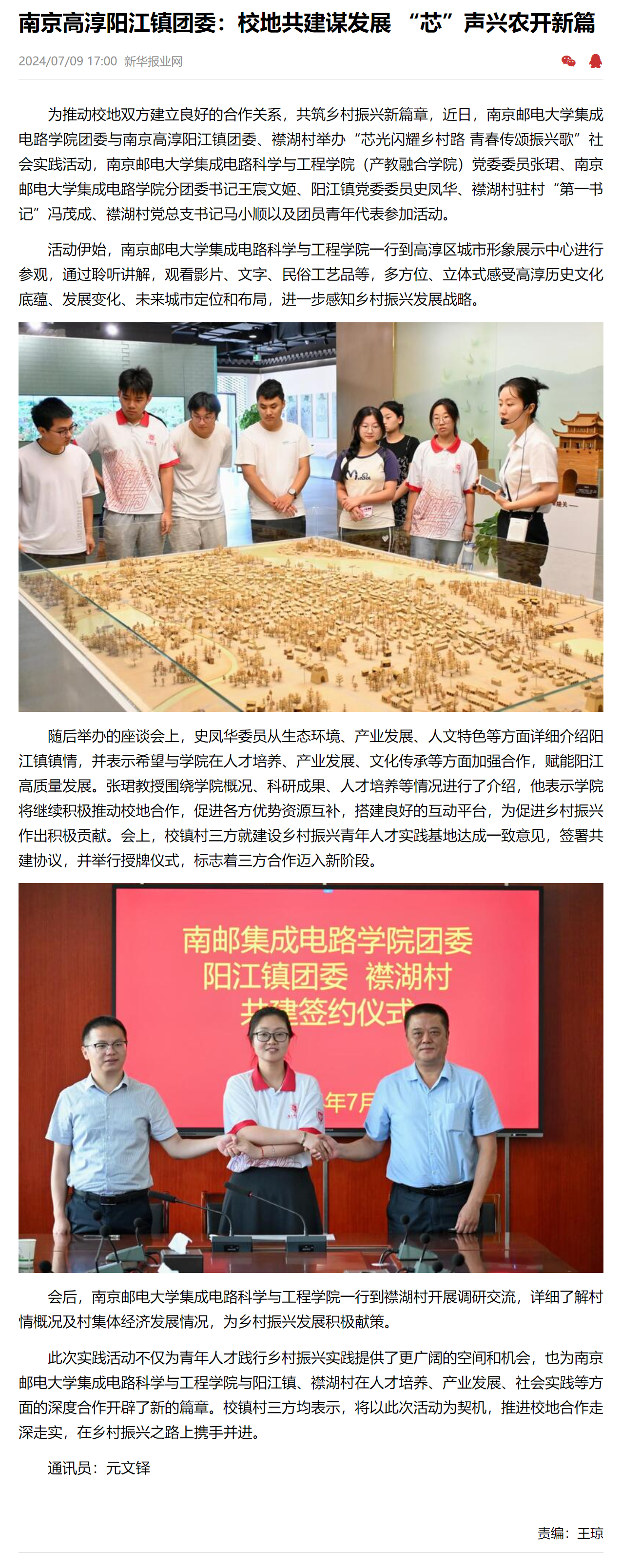 | 【新華報業(yè)網(wǎng)】南京高淳陽江鎮(zhèn)團委:校地共建謀發(fā)展 “芯”聲興農(nóng)開新篇 |