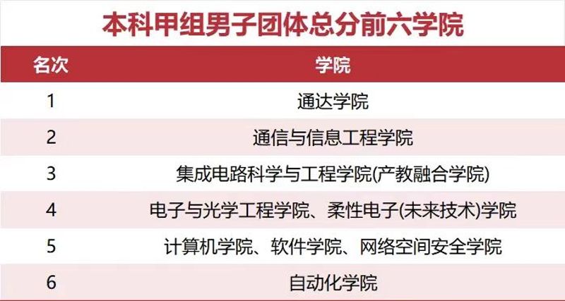 比賽精彩瞬間 10月25日下午,運(yùn)動(dòng)會(huì)落幕。材料科學(xué)與工程學(xué)院榮獲研究生男女團(tuán)體總分第一名,海外教育學(xué)院榮獲本科女子乙組團(tuán)體、本科男子乙組團(tuán)體、本科乙組男女團(tuán)體總分第一名,通達(dá)學(xué)院榮獲本科女子甲組團(tuán)體、本科男子甲組團(tuán)體總分第一名。數(shù)字媒體與設(shè)計(jì)藝術(shù)學(xué)院,電子與光學(xué)工程學(xué)院、柔性電子(未來(lái)技術(shù))學(xué)院,自動(dòng)化學(xué)院,貝爾英才學(xué)院,物聯(lián)網(wǎng)學(xué)院,計(jì)算機(jī)學(xué)院、軟件學(xué)院、網(wǎng)絡(luò)空間安全學(xué)院獲評(píng)“最美方陣”。