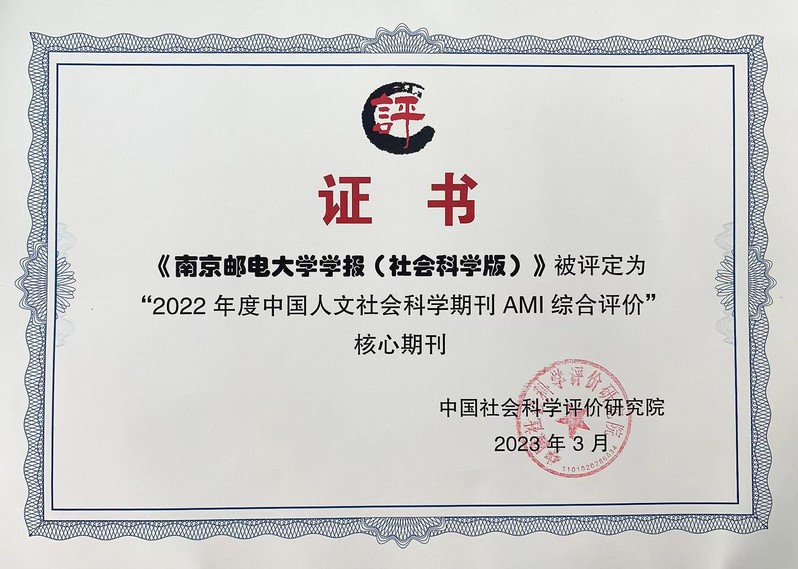 Recently, Chinese Academy of Social Science Evaluation Studies officially released the Comprehensive Evaluation Report of China Humanities and Social Sciences Journal AMI (2022), and Journal of Nanjing University of Posts and Telecommunications (Social Science Edition) was selected into the core journal catalogue, which is an important achievement in the social science edition of the journal.